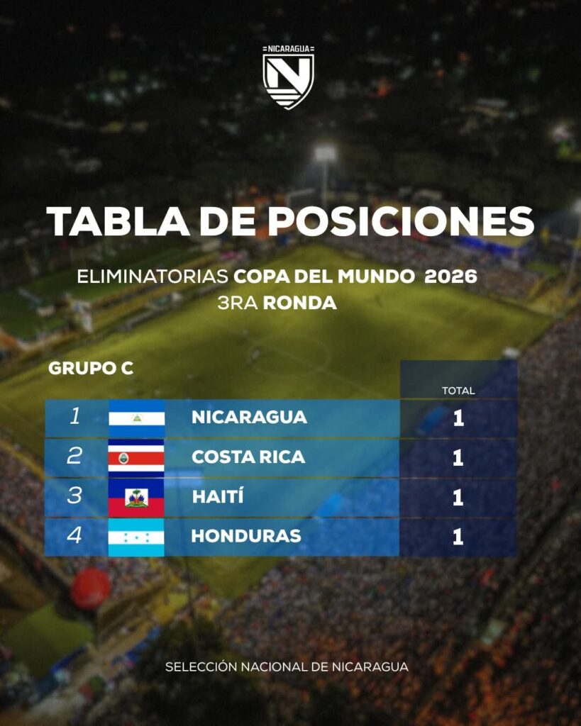 Tras este resultado, el equipo nicaragüense está empatado en el primer lugar con un punto en el grupo C con Costa Rica, quien ahora tendrá la obligación de buscar victorias si quiere aspirar a la clasificación al mundial.