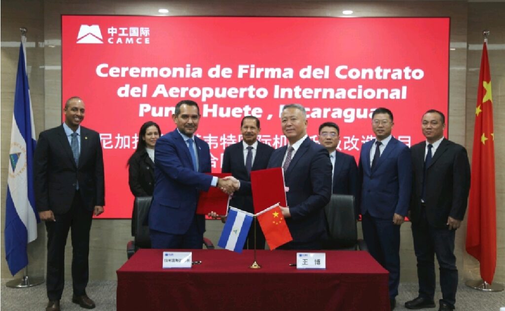 Este lunes, el Ministerio de Transporte e Infraestructura (MTI), en representación del Gobierno de Reconciliación y Unidad Nacional de la República de Nicaragua y la Empresa China CAMC Engineering Co., Ltd, suscribieron el contrato de “Reconstrucción, Ampliación y Mejoramiento del Aeropuerto Internacional Punta Huete.”