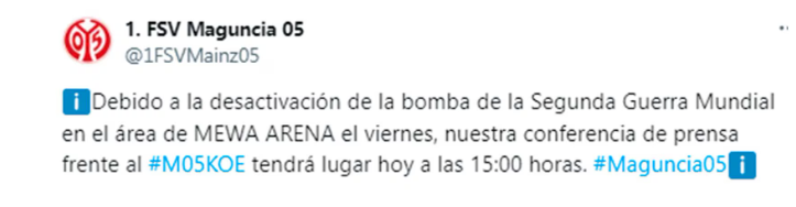 La desactivación está programada para este viernes, lo que ha motivado cambios en la agenda del club. “Debido a la desactivación de la bomba de la Segunda Guerra Mundial en el área del MEWA Arena el viernes, nuestra conferencia de prensa se adelantará a hoy a las 3 PM”, comunicó el club a través de su página web. Además, se han anunciado restricciones operativas para ese día, incluido el cierre temporal de la oficina y la tienda de aficionados del estadio. Este descubrimiento no es aislado, ya que no hace más de quince días se encontró y eliminó una bomba incendiaria pequeña en la misma zona, sin riesgos para la población.