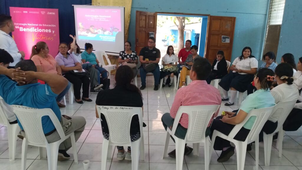 “Nos encontramos reunidos para evaluar la Estrategia Nacional Bendiciones y Victorias 2024-2026, con el propósito de evaluar logros, identificar desafíos. Además, proyectar nuevas acciones que fortalezcan la educación en todos los niveles y modalidades; en aporte al desarrollo humano pleno de la comunidad educativa”, manifestó el Subdelegado Pedagógico Departamental del Ministerio de Educación (Mined), Óscar Rivas.