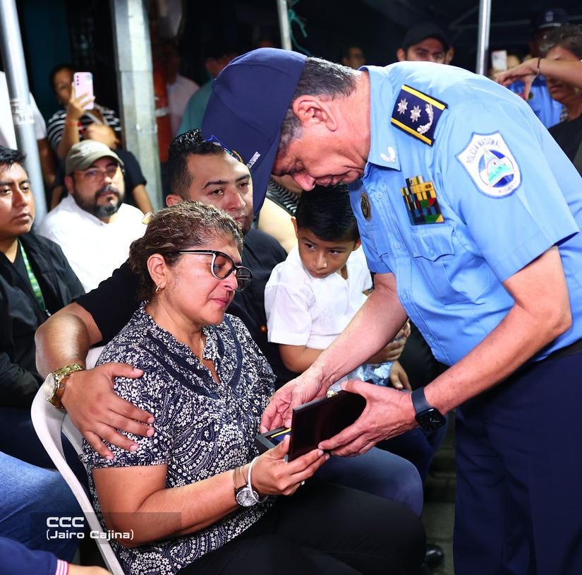 La Policía Nacional realizó entrega este sábado de la medalla al valor Comisionado Juan Ramón Torres Espinoza, a los familiares del Comisionado General Yuri Valle Olivares, quien falleció tras varias complicaciones de salud.