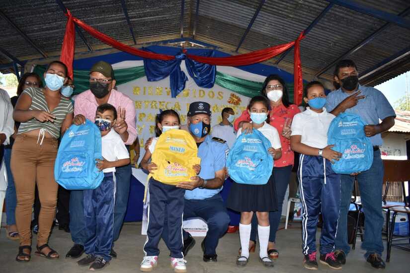 Autoridades del Ministerio de Educación (MINED), municipales y del FSLN, realizaron la entrega oficial de los paquetes escolares, maletines y material fungible, para estudiantes y maestros en el departamento de León.