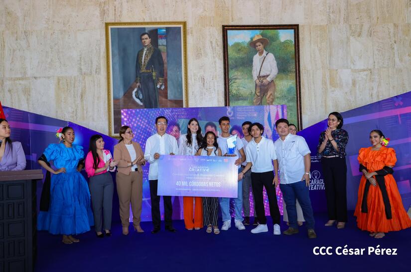 Autoridades nacionales y representantes de la Embajada de la República Popular China, realizaron este jueves la entrega de los premios a los primeros tres lugares del certamen Nicaragua Creativa, el primero que se realiza en la nación centroamericana.