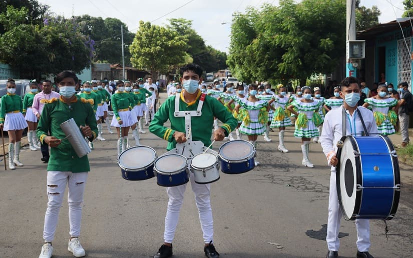 Asimismo, la delegada del Mined en el Distrito V, Francis Hanon, recordó que han estado con estos desfiles comunitarios sábado a sábado celebrando con alegría el Bicentenario de la Independencia”.