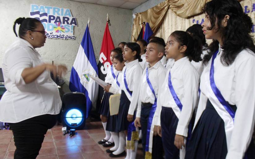 Con una cantata de música revolucionaria protagonizada por el Coro Estudiantil Rubén Darío del Distrito VIII de Managua, la comunidad estudiantil del Instituto Primero de Mayo celebró este viernes el 45 aniversario del Triunfo de la Revolución Popular Sandinista, el subdirector del centro Josué Espinoza.