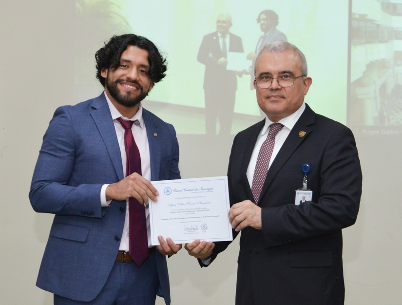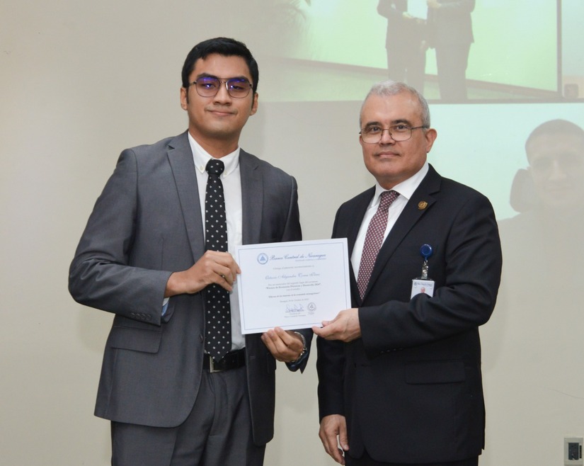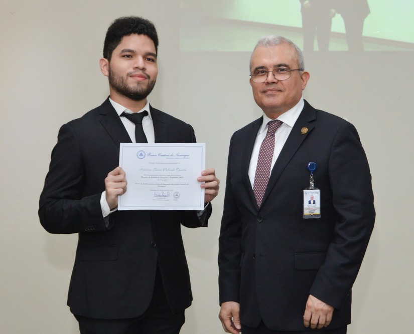 La elaboración de investigaciones que aportan al desarrollo de la economía nicaragüense fue premiada este martes por el Banco Central de Nicaragua (BCN), obteniendo el primer lugar, Jeffrey Serrano, quien presentó el trabajo Tributación Progresiva en Nicaragua y su Eficiencia en la Reducción de Desigualdad.