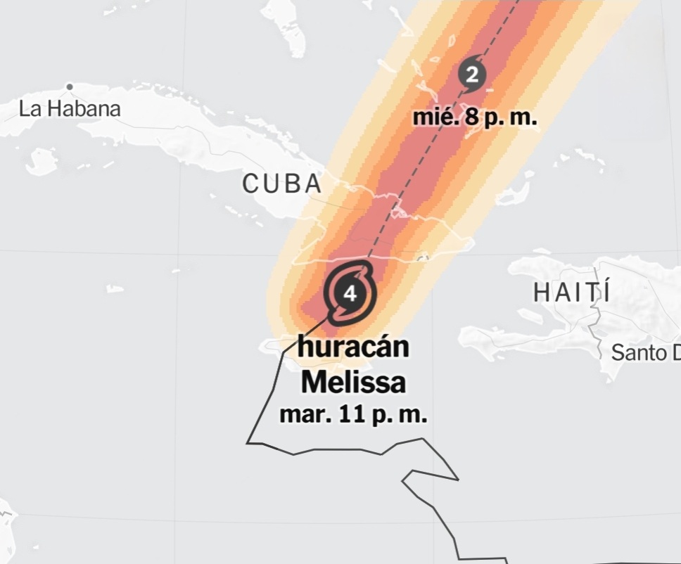Melissa ahora tiene vientos sostenidos de 209 kilómetros por hora mientras se aproxima al sureste de Cuba. El Centro Nacional de Huracanes (NHC, por sus siglas en inglés) informó que el ciclón se está fortaleciendo nuevamente y podría tocar tierra en las próximas horas como un huracán de categoría 4 extremadamente peligroso.