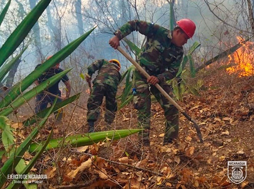 El Ejército de Nicaragua a través del 6 Comando Militar Regional y el Estado Mayor de la Defensa Civil, en coordinación con, el Instituto Nacional Forestal (INAFOR), instituciones del Estado y la brigadas comunitarias, participaron en sofocación de incendio forestal, en las comunidades Las Palmeras y Los Papales, municipio de Jinotega, departamento de Jinotega, logrando extinguir un fuego en un área de 42.66 manzanas de bosques.