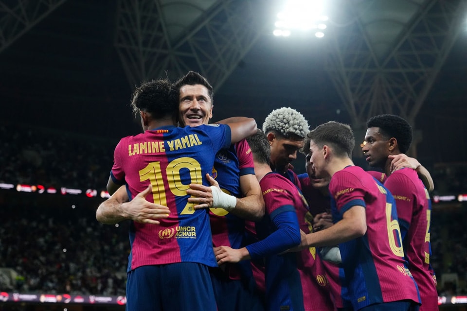 Si bien los merengues se adelantaron rápidamente en el marcador con un temprano gol de Kylian Mbappé a los 5 minutos del encuentro, el Barça lo empató con un tanto de Lamine Yamal. Casi un cuarto de hora después, Robert Lewandowski, convirtió un penalti y dio vuelta el marcador en favor de los catalanes.