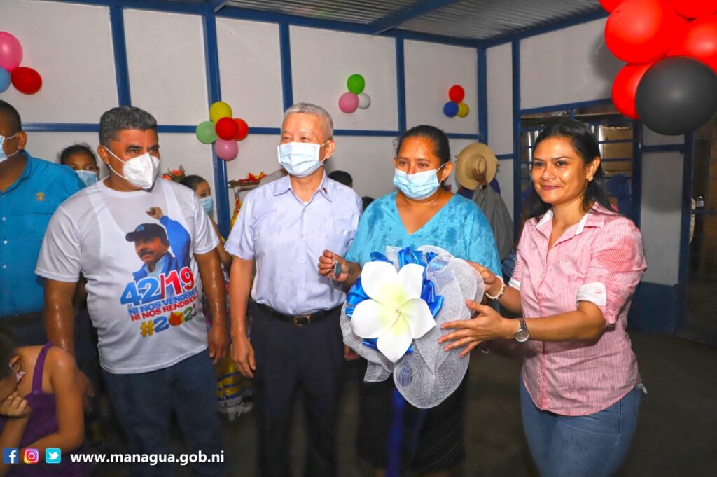 Las llaves de esta vivienda digna fueron entregadas a la familia protagonista, Secretaria del Concejo de Managua, Jennifer Porras López, junto al señor Ivan Lo, Ministro Consejero de la Embajada de Taiwán en Nicaragua, en un ambiente de familia y comunidad.