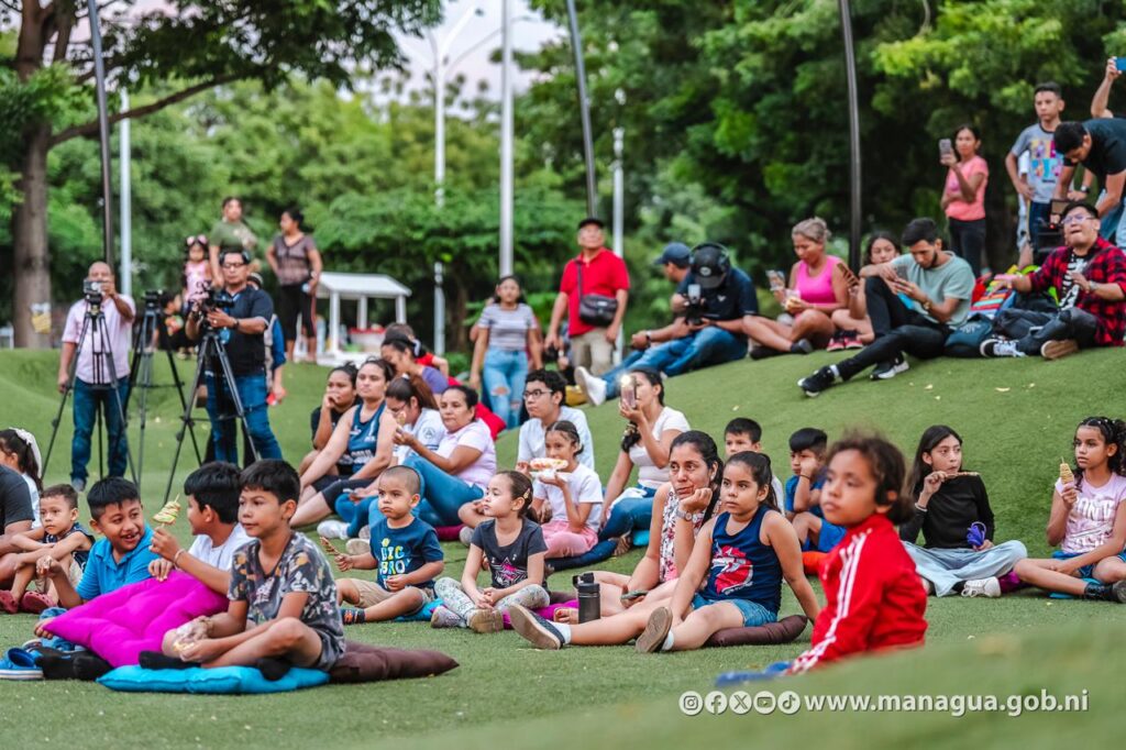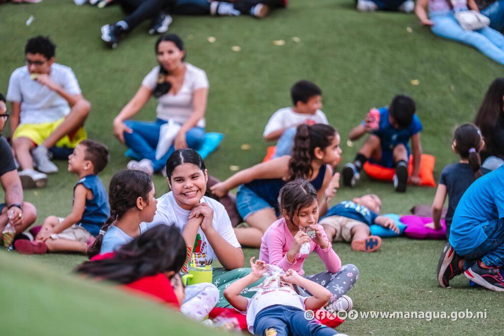 Las familias capitalinas disfrutaron del festival de Cine Infantil Navideño, en el parque Palestina. Los asistentes también fueron parte de una agenda cultural llena de magia, luz y color, que incluyó bailes, dulces, palomitas, entre otras actividades.