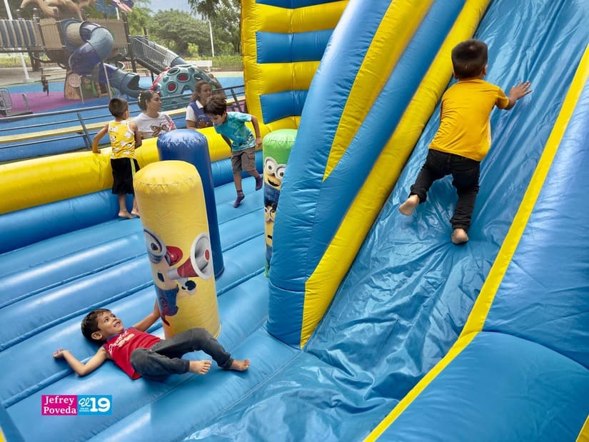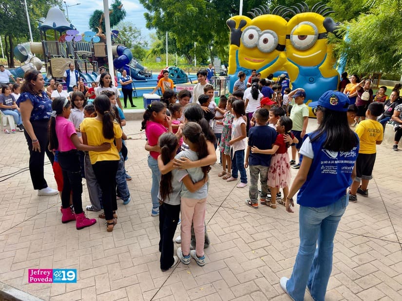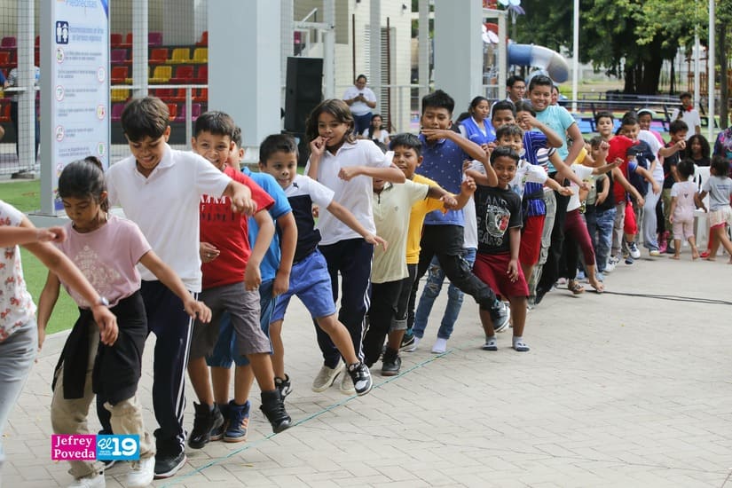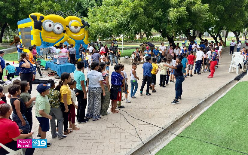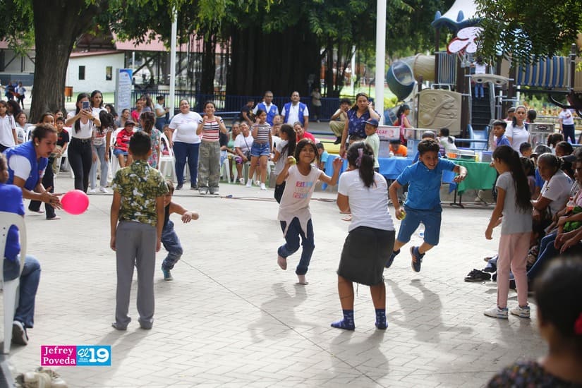 Cientos niños, adolescentes y familias de los barrios aledaños al Parque Las Piedrecitas participaron en una tarde recreativa realizada este jueves por la Promotoría Solidaria de la Juventud Sandinista 19 de Julio, en celebración de la Semana de la Familia.