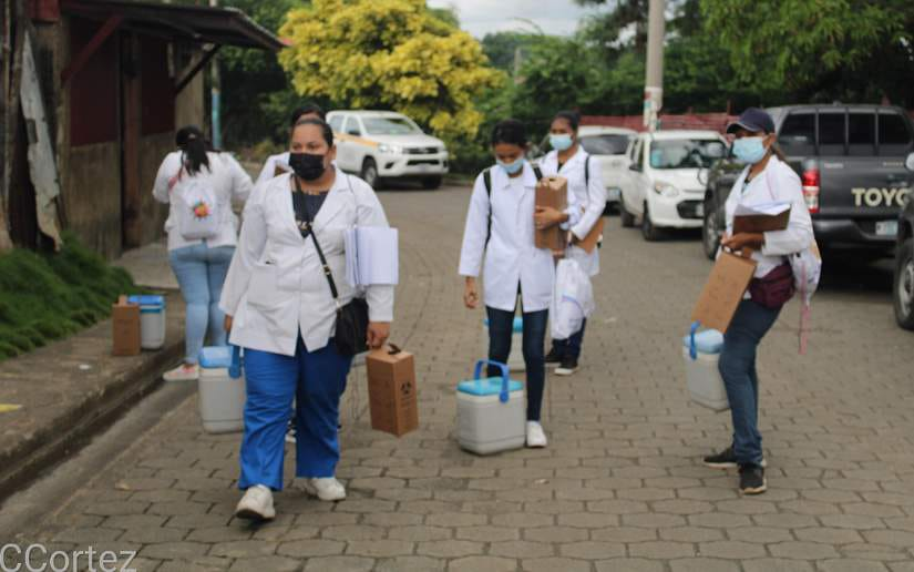 Brigadistas del centro de salud Pedro Altamirano, se desplazaron al barrio Adolfo Reyes en Managua, con el propósito de inocular a la población contra el virus del Covid – 19.