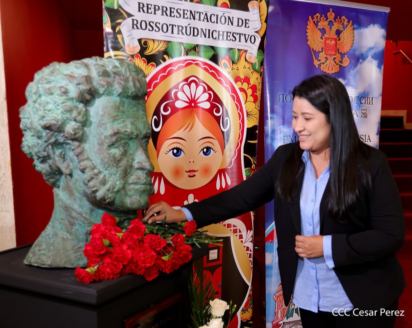 “Podríamos comparar a él (Alexander Pushkin) con Rubén Darío, lo que significa Rubén Darío para Nicaragua, siendo Héroe Nacional, es quien expresa el alma nicaragüense y Alexander Pushkin para nosotros es todo y también somos nación de poetas y tenemos una línea que une a nuestros servicios diplomáticos”, añadió el embajador.