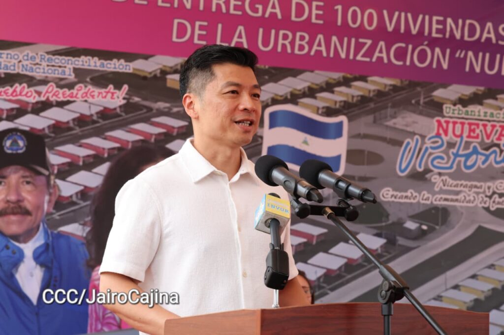 “Solo este gobierno liderado por el Frente Sandinista de Liberación Nacional ha llevado a cabo estos programas de vivienda que le dan la oportunidad a nuestros pueblos de tener un techo digno, la vivienda para vivir en paz y poder desarrollar sus actividades cotidianas, poder tener a sus familias en buen resguardo, y el apoyo de la República Popular China es determinante”, afirmó el Asesor Presidencial para las Inversiones y la Cooperación, Laureano Ortega Murillo.