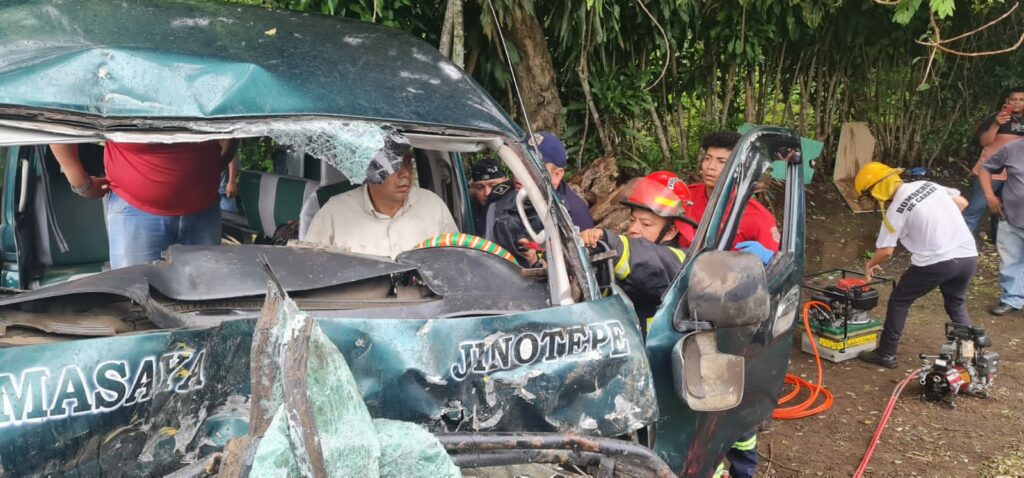 Miembros del Benemérito Cuerpo de Bomberos de Carazo y Dirección General de Bomberos, junto a Cruz Roja Nicaragüense, que se presentaron al lugar del accidente realizaron labores de extracción al conductor y dos pasajeros que viajaban en la parte de adelante.