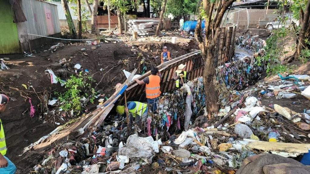 En el barrio Oswaldo Manzanares en el distrito VI de la capital, las familias reportaron que debido a la fuerte lluvia, una calle en la que la cuadrilla de la Alcaldía de Managua, realizan trabajos de mantenimiento quedó intransitable.