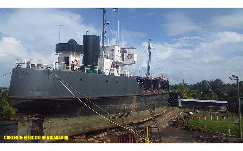 El Ejército de Nicaragua consecuente con el lema de que “Somos el Pueblo mismo uniformado trabajando en su propio beneficio”, a través del Distrito Naval Caribe, el 20 de noviembre de 2021, en la Base de Reparaciones del puerto El Bluff, se realizó maniobra de subida del buque-tanque “IV MARÍAS” al dique seco, con el objetivo de realizar mantenimiento y reparación del mismo, para continuar con la transportación de combustible hacia puerto Cabezas, puerto El Bluff y Corn Island. Con estas acciones, el Ejército de Nicaragua contribuye a las actividades económicas del país.