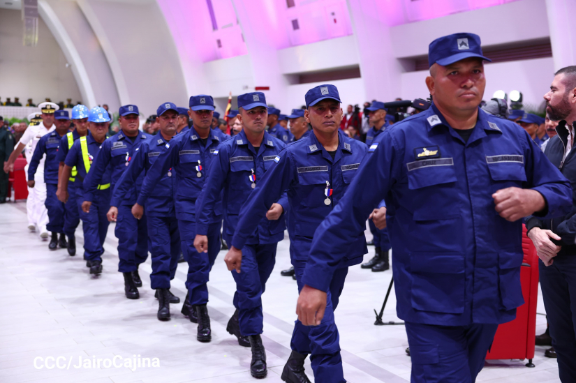 “Cumplimos nuestras misiones y tareas altamente cohesionados y disciplinados aportando a la seguridad, estabilidad, tranquilidad y paz de nuestra nación, cumpliendo con lo establecido en la Constitución Política, Leyes y Ordenes del alto mando, a partir de la sentencia de la Corte Internacional de Justicia hemos venido desarrollando eficientemente los planes estratégicos, Misión Paz y Soberanía, General Augusto C. Sandino en el Caribe Norte y Sur, en el Pacifico Norte y Sur de nuestro país y Golfo de Fonseca, realizando 179 mil 647 misiones, navegamos 674 mil 430 millas náuticas, cumplimos 283 relevos, proporcionamos seguridad a 130 embarcaciones de pesca industrial y 2 mil 496 embarcaciones de pesca artesanal que realizan diariamente sus faenas de pesca en los espacios marítimos nicaraguenses”, detalló.
