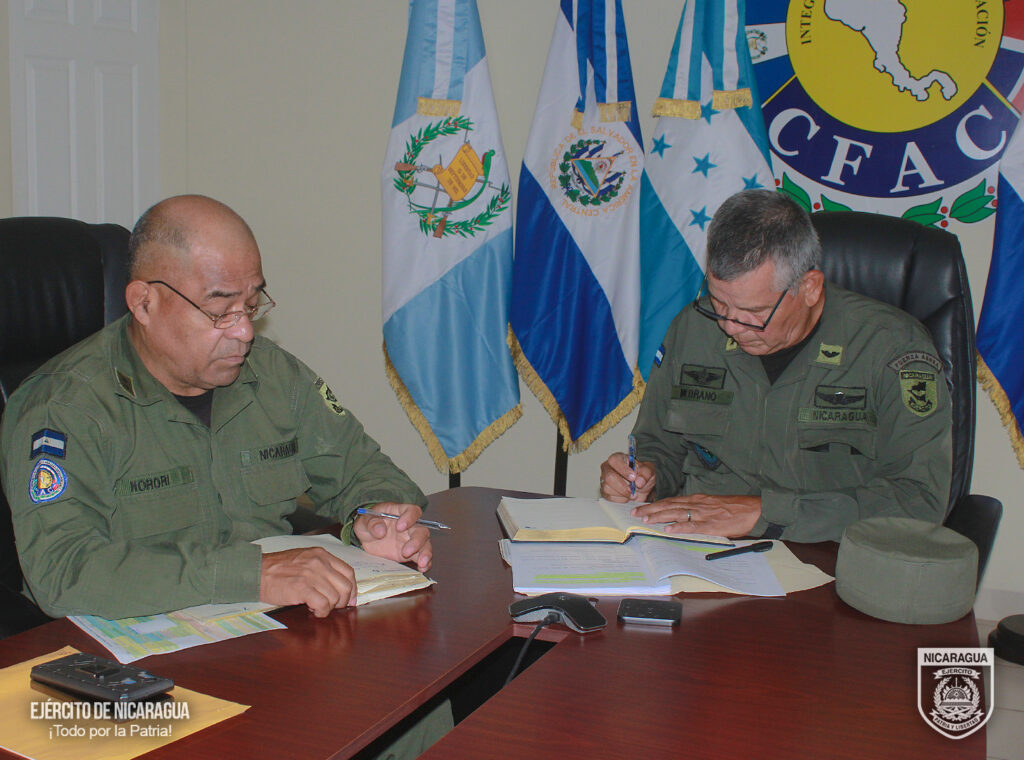 Miembros de la Fuerza Aérea del Ejército de Nicaragua participaron este jueves en la presentación de la Propuesta de actualización del Programa de Cooperación entre las Fuerzas Aéreas Miembros (FAM) de la Conferencia de las Fuerzas Armadas Centroamericanas (CFAC).