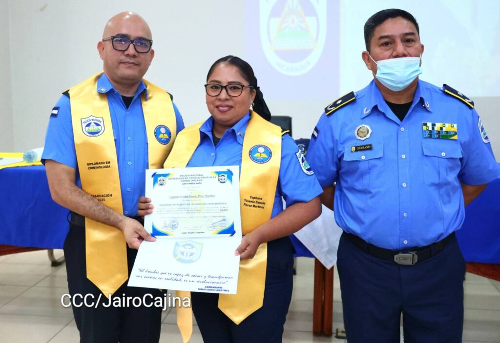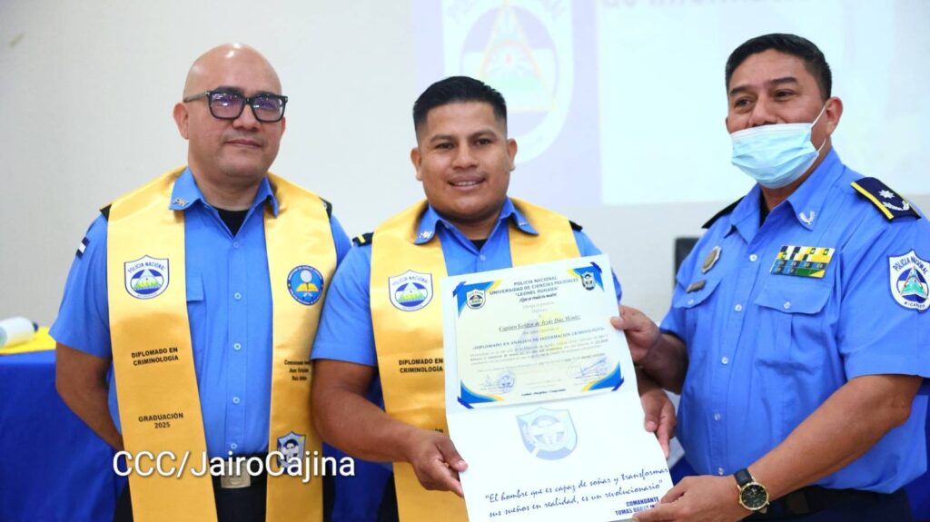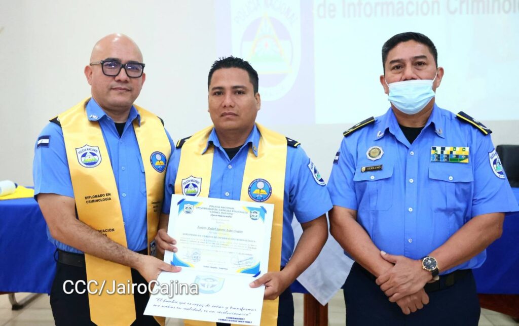 “Todo esto que nosotros hemos logrado en estos meses del diplomado, estarán al servicio de nuestro pueblo. Conocimientos que van a darle una mejor atención en nuestras investigaciones, para garantizar la paz, la seguridad a las familias nicaragüenses porque sabemos que con la paz no se juega”, expresó el comisionado general Ruiz.