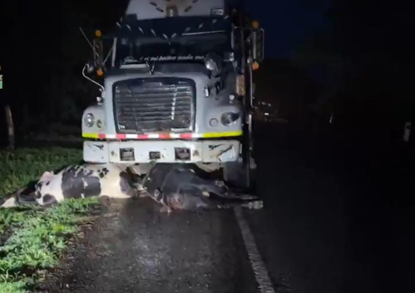 Al menos 13 vacas murieron arrolladas al momento de ser impactadas por un furgón color blanco, placa M 296-940, cuyo conductor aseguró que le fallaron los frenos en el sector conocido como Arrayán, a cuatro kilómetros del municipio de Acoyapa, en Chontales.
