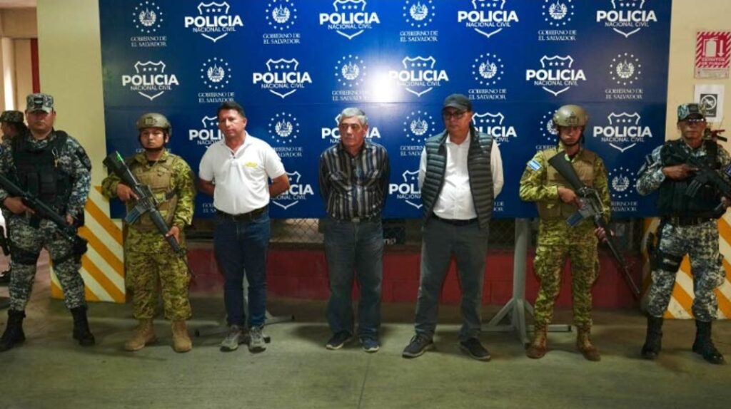 Las cinco personas detenidas el lunes son Alejandro Arriaza, vicepresidente de una asociación de la ruta 202, Genaro Ramírez, presidente de la Asociación de Empresarios de Autobuses Salvadoreños, Alex Sorto, presidente de la Mesa Nacional de Transporte, Abel Reina, y Nelson Moreno, también integrantes de la gremial.