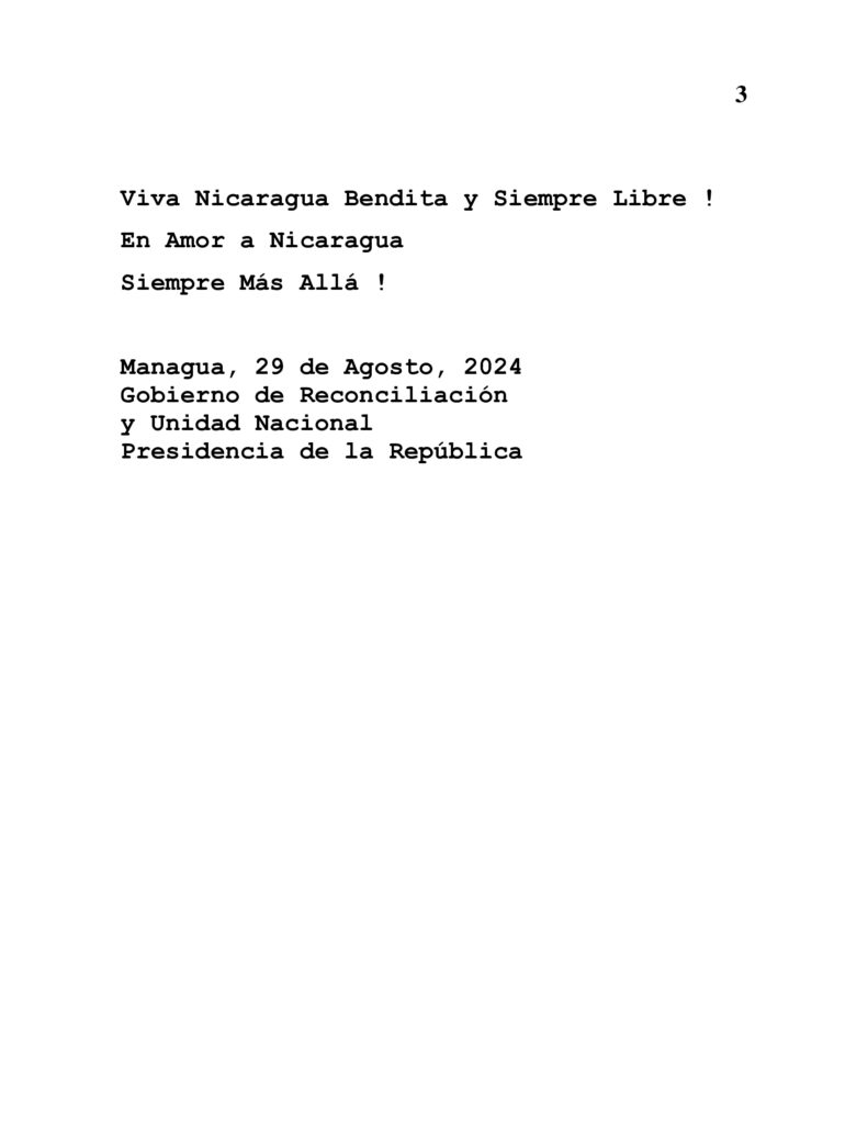 A continuación nota del Gobierno de Nicaragua sobre las vacaciones patrias: