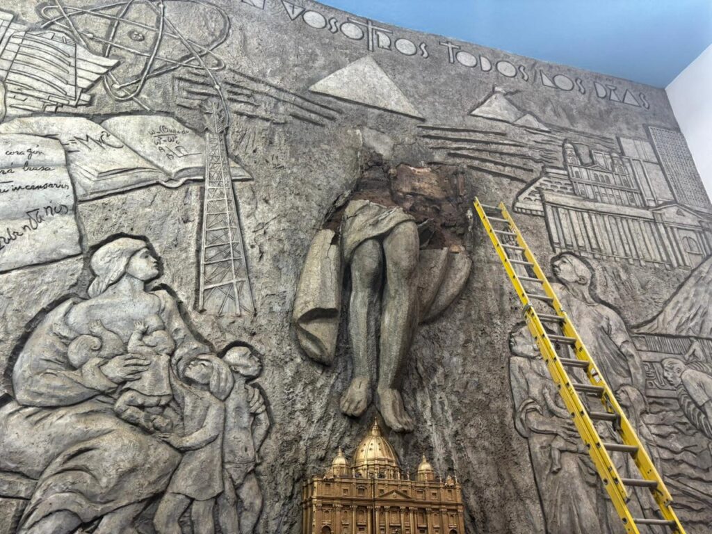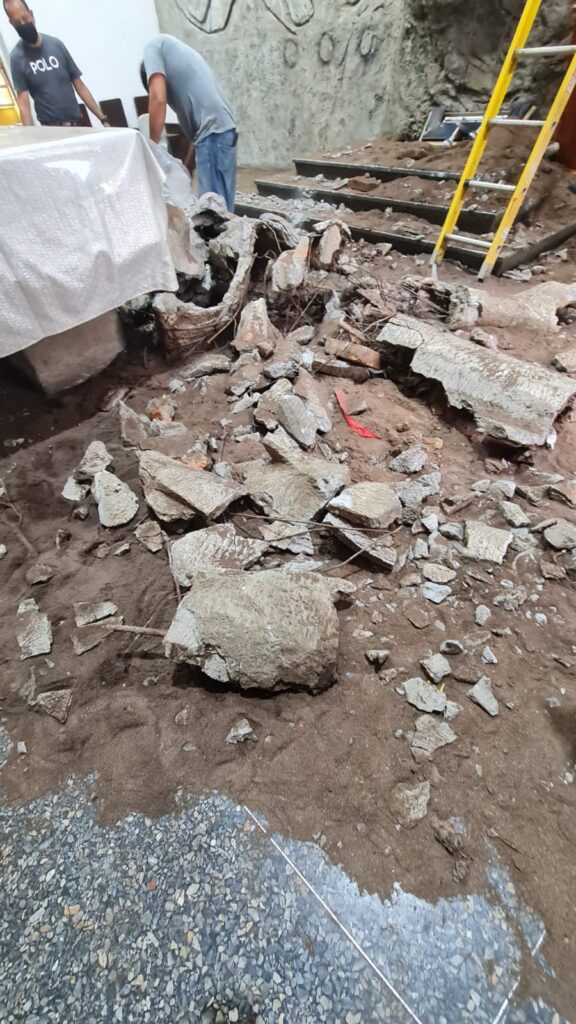 Por su parte, el padre Michael Medina, indicó que la obra colapsó a eso de las 9: 30 pm de este miércoles y de acuerdo con los especialistas el cemento que sostenía la imagen caducó.