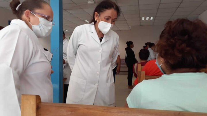 La Asesora Presidencial en Salud doctora Sonia Castro conversa con personas atendidas en puesto médicos de San Juan del Sur.