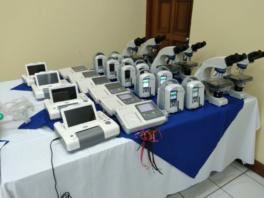 Los aparatos entregados fueron rayos X, taladros neuroquirúrgicos, ultrasonidos, cunas térmicas, equipos oftalmológicos, máquinas de anestesiología, electrocardiógrafos, monitores para el área de neonato y equipos de laboratorio.