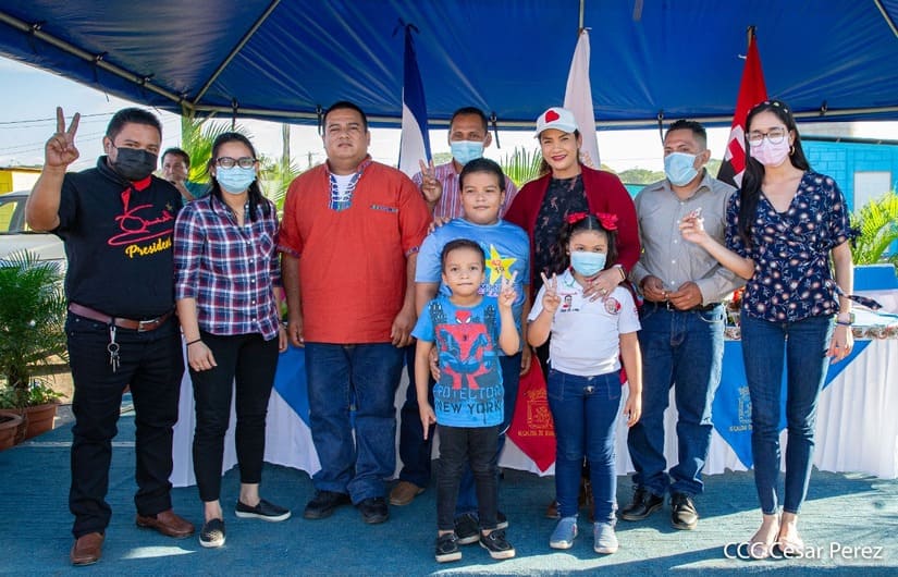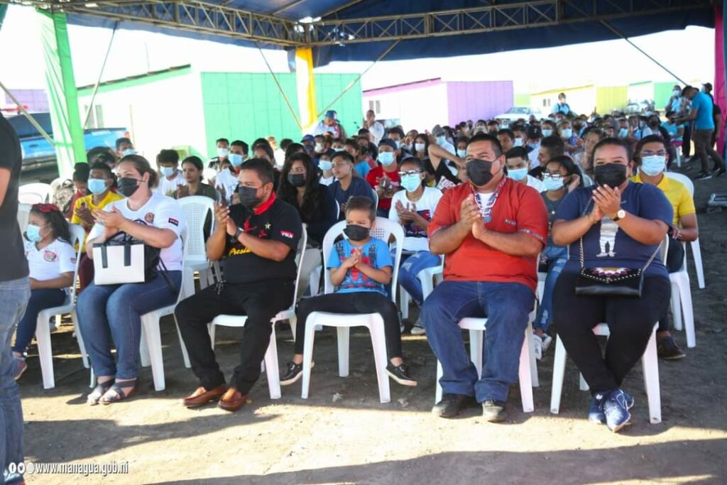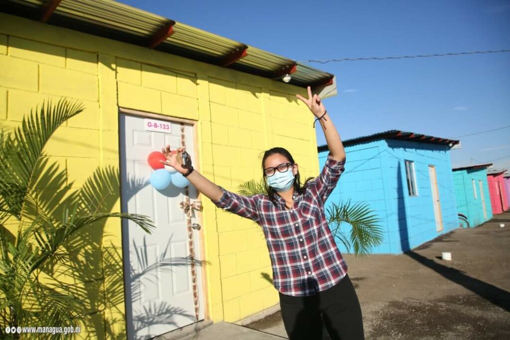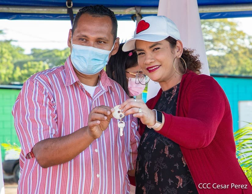 El acto de entrega estuvo presidido por la alcaldesa de Managua, Reyna Rueda y protagonistas de esta nueva entrega, como parte de la restitución de derechos a una vivienda digna que promueve el Presidente Daniel Ortega y la vicepresidenta Rosario Murillo.