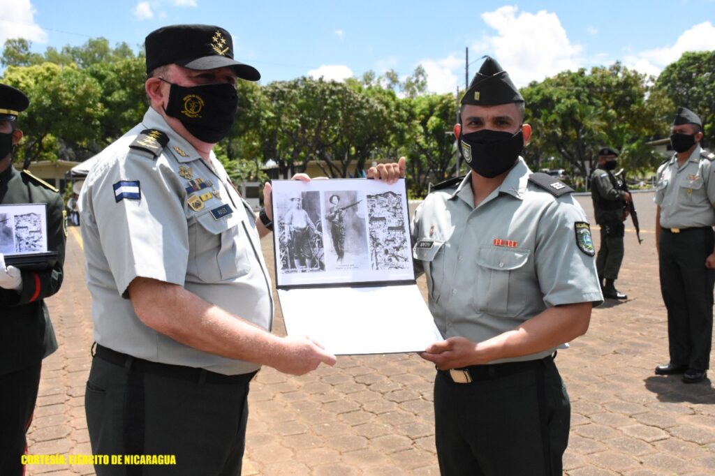 Los Agregados de Defensa, Militares, Navales, Aéreos, Adjuntos y Jefes de Misiones Militares acreditados en la República de Nicaragua, entregaron reconocimientos y presentes a los primeros expedientes de los cursos.