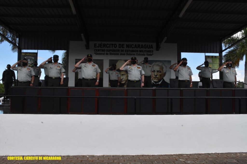 El Ejército de Nicaragua consecuente con el lema de que “Somos el Pueblo mismo uniformado trabajando en su propio beneficio”, en la Plaza de los Héroes y Próceres de América, del Centro Superior de Estudios Militares “General de División José Dolores Estrada Vado” (CSEM), el 4 de octubre de 2021, realizó ceremonia de graduación de cursos de oficiales del XXIV Diplomado de Estado Mayor (DEM), I Diplomado de Estado Mayor de Servicios Médicos, XXVII Curso de Superación de Armas y Servicios (CSAS) y el V Curso de Superación de Armas y Servicios Médicos (CSASME), de la Escuela Superior de Estado Mayor “General Benjamín Zeledón Rodríguez” (ESEM), asimismo el III Curso de Perfeccionamiento de Oficiales con especialización en Mando Blindado, III Curso de Perfeccionamiento de Oficiales con especialización en Mando Naval y el I Curso de Perfeccionamiento de Oficiales con especialización en Mando Operaciones Especiales.