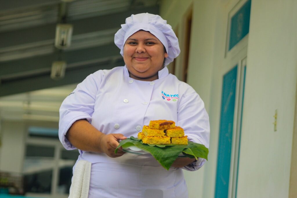 “Aquí tenemos todos los utensilios, la maquinaria, el espacio y las actividades que se realizan continuamente para poner en práctica lo que hemos aprendido. Me siento orgullosa de poder honrar a mi patria a través de la gastronomía”, declaró la estudiante Cindy Gaitán.