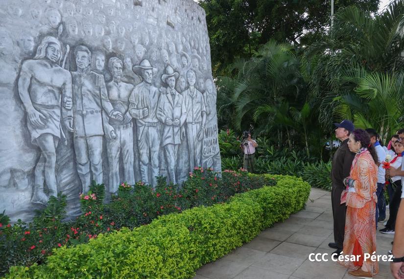 Posteriormente el Comandante Daniel ante el monumento de los Héroes de la Patria, expresó: “Aquí ante nuestros héroes, Nicarao, Diriangén, José Dolores Estrada, Andrés Castro, Benjamín Zeledón, el General Sandino y Carlos Fonseca, decimos Patria Libre o Morir, Hasta la Victoria Siempre”.