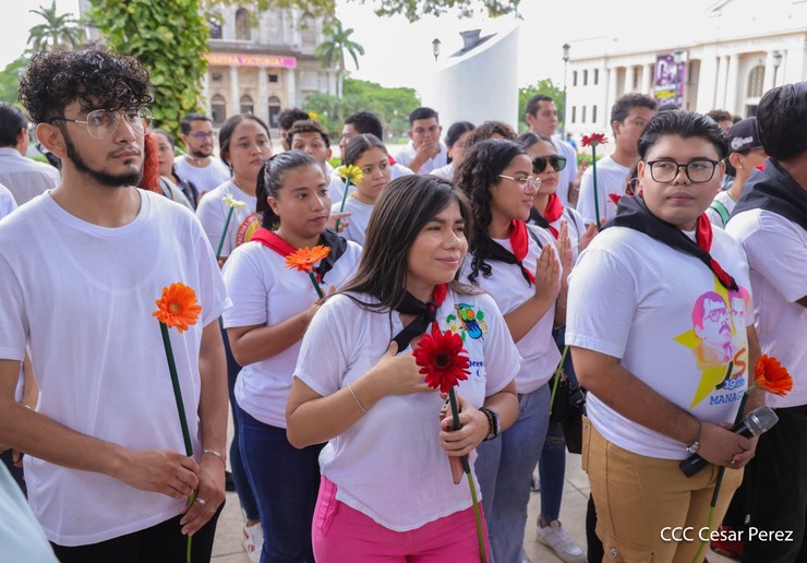 El general nos ha inspirado día con día a permanecer firme con los ideales del Frente Sandinista de Liberación Nacional. Su legado sigue vivo en cada uno de nuestros corazones, en cada uno de los jóvenes revolucionarios. La juventud está presente en todos los ámbitos de nuestra Nicaragua bendita y siempre libre”, expresó el Coordinador Departamental del Movimiento Cultural Leonel Rugama, Alexander Pineda.
