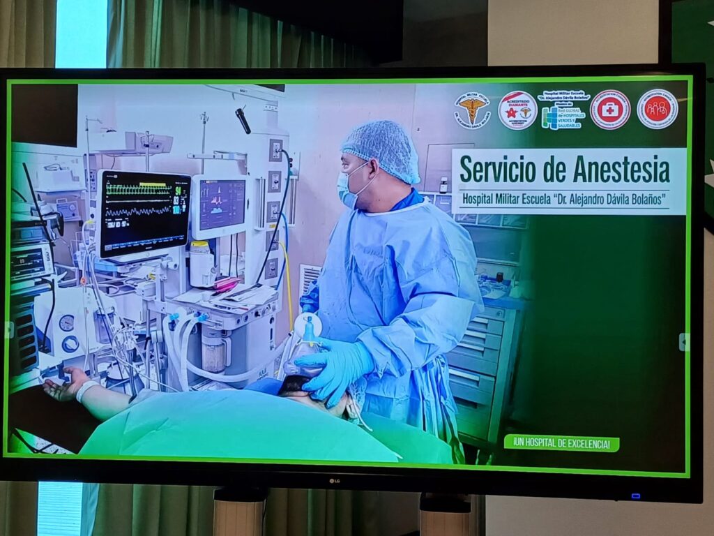 “El servicio de anestesia del hospital Dr. Alejandro Dávila Bolaños, actualmente cuenta con 24 médicos especialistas en Anestesiología, y de estos, 6 médicos sub-especialistas en diferentes ramas de la Anestesia, lo cual ha fortalecido el desarrollo de la realización de cirugías de alta complejidad que anteriormente, años atrás, era un sueño” manifestó el Jefe de servicios de Anestesia y Sub Especialista en Neuroanestesia, Capitán José Luis Talavera.