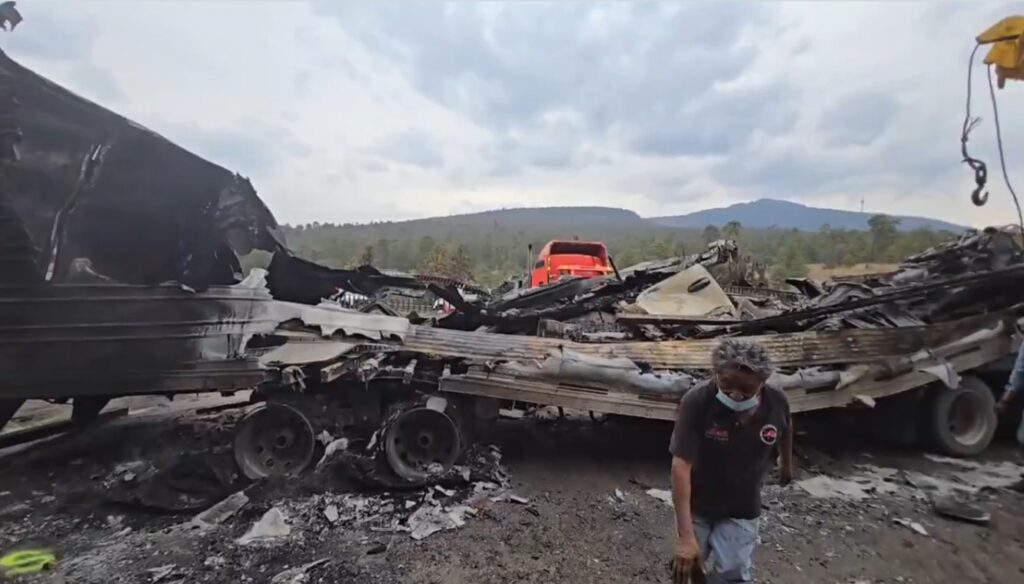 La colisión hizo explotar el gas y los demás vehículos también se incendiaron. El fuego afectó, además, a los pastizales de la zona conocida como Llano Grande, que está en medio de las montañas.