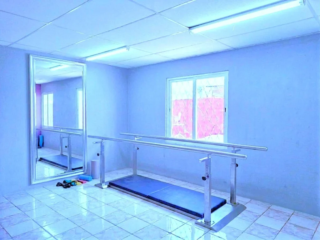 El centro cuenta con taller para elaboración de órtesis y prótesis, gimnasio de rehabilitación, áreas de admisión, preclínica, consultorio y salas para brindar atención especializada en fisiatría y fisioterapia.