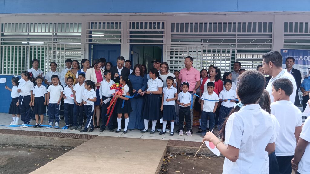 Autoridades del Ministerio de Educación (MINED) y el Embajador de Japón Ogino Masahiro inauguraron este jueves dos aulas en la escuela pública primaria de la comunidad San José, en Masatepe, como parte de las celebraciones por el 80 aniversario de relaciones diplomáticas entre Nicaragua y la nación asiática.