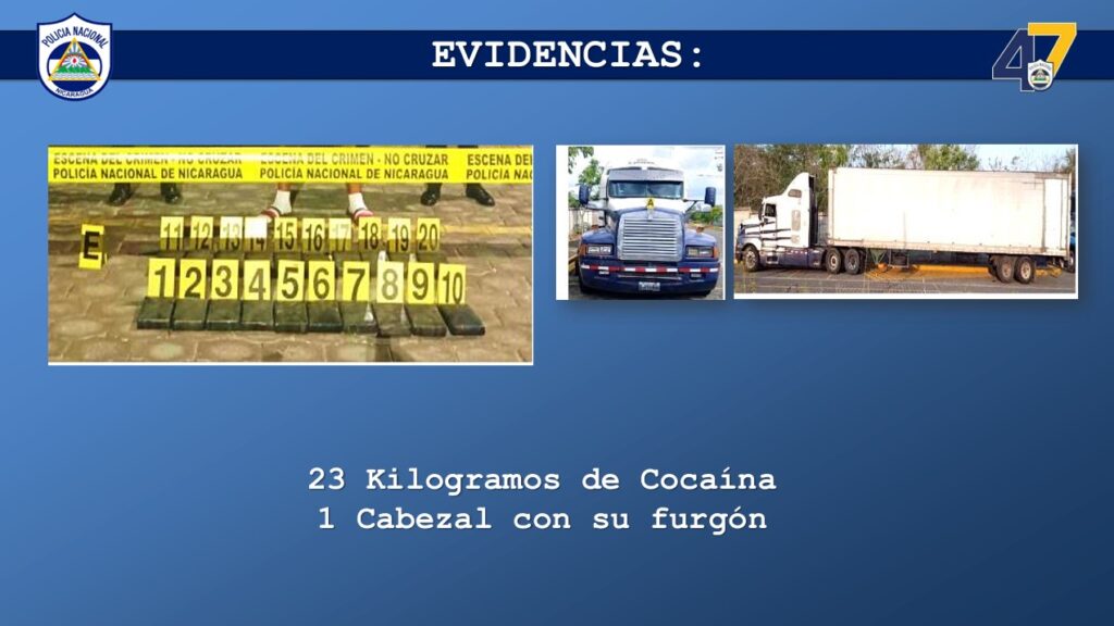 “En la inspección realizada en la parte trasera de la cabina del furgón, se encontraron 20 paquetes rectangulares envueltos en cinta adhesiva. La prueba de campo dio positivo a cocaína con un peso de 23 kilogramos”, expuso la comisionada Obando.
