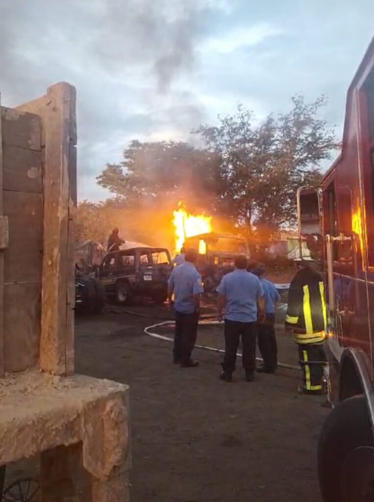 El guarda de seguridad, cuya identidad se desconoce, llamó a los Bomberos Unidos, no obstante, las llamas dejaron a tres cabezales y un jeep, totalmente calcinados; y otro cabezal y un camioncito, con daños parciales.