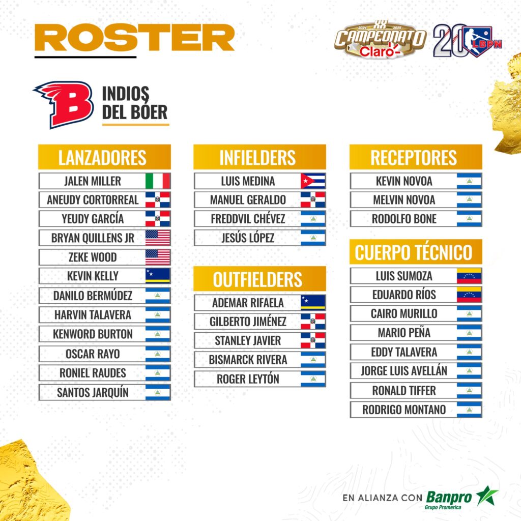 A continuación roster oficial Indios del Bóer: