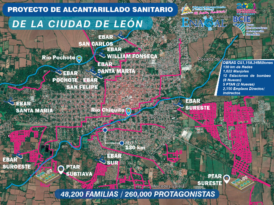 La Empresa Nicaragüense de Acueductos y Alcantarillados Sanitarios (ENACAL), realizó junto a familias protagonistas y autoridades municipales, el inicio oficial del proyecto de mejoramiento y ampliación del sistema de alcantarillado sanitario y tratamiento en León.