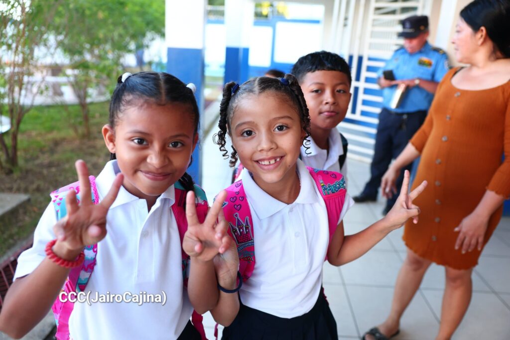 “Hay una fiesta nacional. Hoy Nicaragua se viste de azul, blanco y azul con un millón 800 mil niños y niñas en los turnos matutinos y vespertinos en donde damos apertura con alegría a este ciclo escolar. Son cerca de 10 mil 700 centros educativos a nivel nacional, que estamos más que listos para poder desarrollar durante esos 200 días clases, nuestros estudiantes en Nicaragua fortalecen su calidad educativa en las matemáticas práctica, en la lectura, en la comprensión lectora, en las ciencias naturales, en la investigación, en el uso de herramientas tecnológicas con fines educativos, en la merienda escolar, en el deporte, en el arte, en la cultura”, expresó la Ministra de Educación, Mendy Aráuz.
