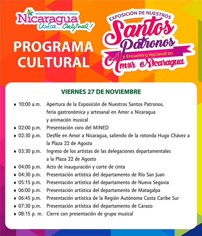 Para promover la identidad religiosa de Nicaragua, el Instituto Nicaragüense de Turismo (INTUR), realizará la V Edición de “Exposición Nacional de Nuestros Santos Patronos”.