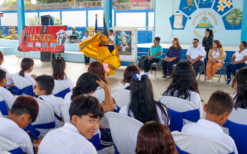 En el acto llevado a cabo en el colegio Augusto C. Sandino del Distrito IV, los docentes destacaron la historia del Héroe Nacional y su sacrificio en la defensa de la patria y la soberanía.