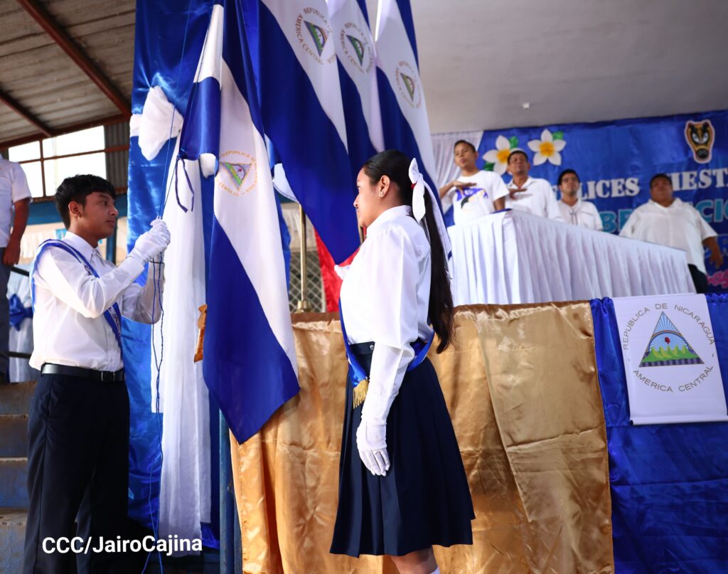 “Hoy (viernes) en todas las escuelas del país se iza el pabellón azul y blanco y se entona el Himno Nacional. Este fin de semana inician los desfiles escolares, recordando el 168 aniversario de la Batalla de San Jacinto y el 203 aniversario de la firma del Acta de la Independencia, dos acontecimientos históricos que nos enorgullece como nicaragüenses”, manifestó el Director General de Educación Primaria del Ministerio de Educación (MINED), Cristian Cerda.