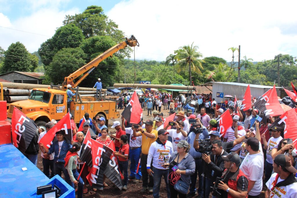 Nota de presa-En el marco de la jornada de conmemoración del 57 aniversario de la gesta heroica de Pancasán, el Buen Gobierno Sandinista inició el proyecto de instalación de energía eléctrica a 28 familias de la comunidad Las Manos, el lugar exacto donde aquel 27 de agosto de 1967 ofrendaron su vida los 13 héroes miembros de la guerrilla del FSLN.